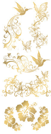 Large sheet of beautiful golden butterflies, flowers and birds temporary tattoos