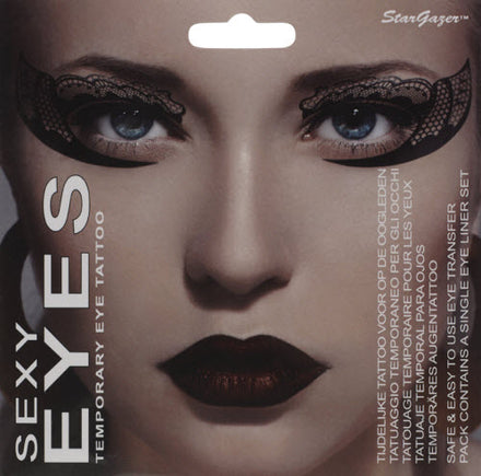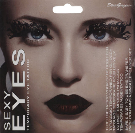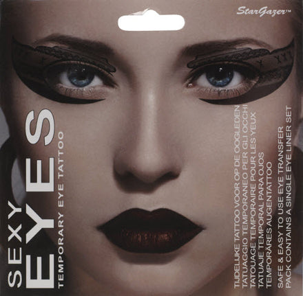 The Stargazer sexy eyes temporary eye tattoo is an easy to apply eye decoration tattoo transfer. The transfer lasts all day if it does not get in contact with oil. There are 6 fantastic eye catching Stargazer quality designs. You can cut the shape of the transfer to alter the look of the design.