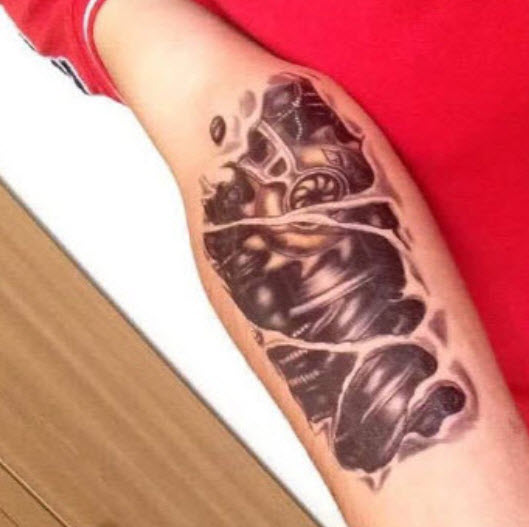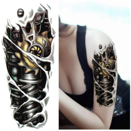 This large bionic arm temporary tattoo Is the ideal tattoo for halloween or any dress-up party.