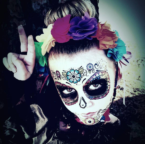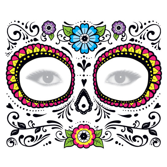 Glitzer Gesichtsmaske mit Blumen Design entfernbare Tattoo. Inspiriert von der mexikanischen Día de los Muertos (Tag der Toten) Masken.