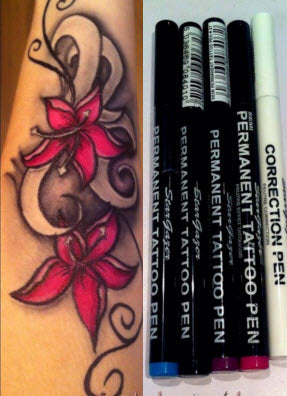 Kreieren Sie atemberaubende, haltbare Tattoo-Designs mit den Stargazer Semi-Permanent Tattoo-Stiften. Mit diesen revolutionären kosmetischen Tattoo-Stiften können Sie ganz einfach ein Design zeichnen, das den ganzen Tag hält.