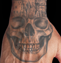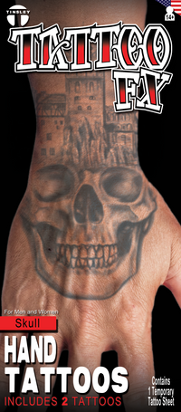 Die temporären Totenkopf-Tattoos werden in den USA von der Hollywood-Visagistin Christien Tinsley kreiert.