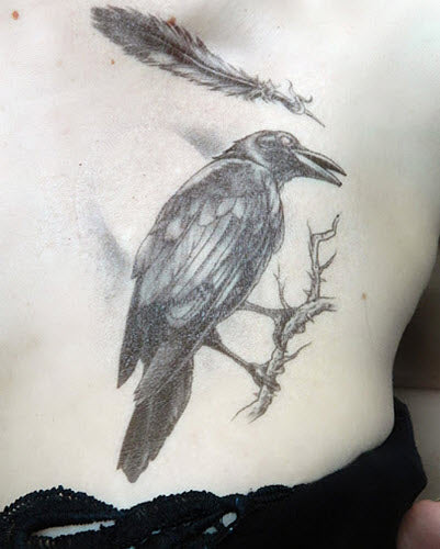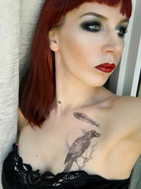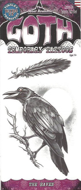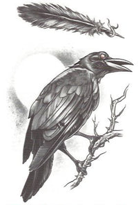 Schwarze Rabe und der Mond + Feder gothic temporäre Tattoo von Tinsley Transfers