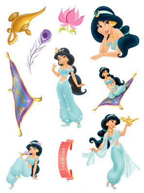 Großes Blatt Multi temporäre Tattoos von Aladdin, darunter Prinzessin Jasmine und der Zauberteppich