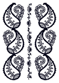 Es werden ausschließlich FDA-zertifizierte Farbstoffe verwendet. Alle unsere Lieferanten müssen nachweisen, dass sie alle US-amerikanischen und internationalen gesetzlichen Anforderungen erfüllen. Wir garantieren, dass unsere temporären Tattoos KEIN schwarzes Henna oder PPD enthalten.