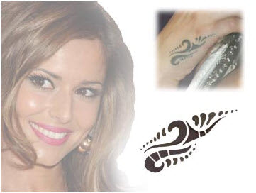 Grils Aloud Sängerin und Schauspielerin Cheryl Cole trägt dieses schöne Tattoo auf ihrer Rechter Hand. Dies ist ein sehr gewagter Platz fär ein Tattoo. Es ist unmöglich um ein Tattoo auf der Hand zu verbergen, es wird immer sichtbar sein. Sie hingegen können dieses temporäre Tattoo von Cheryl Cole tragen wo Sie möchten. Und Sie können im Gegenteil zu Cheryl das Tattoo entfernen wenn Sie es nicht länger tragen möchten.