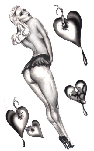 Sexy blonde Pinup mit erhabene Arsch und Herzen temporäre Tätowierungen