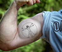 Hombre de Vitruvio, un famoso dibujo de Leonardo Da Vinci, ahora como un tatuaje temporal. ¡Qué gran tatuaje temporal!