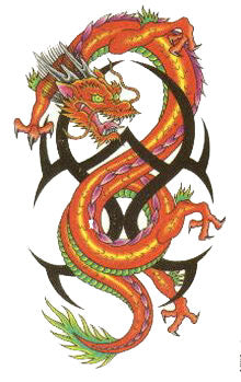 Dragón marrón con tatuaje temporal motivo tribal