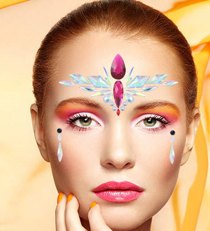 Les bijoux corporels autocollants se portent sur le front et le visage, mais aussi sur les bras et les épaules, ou autour du nombril et même sur votre décolleté (ultra-sexy!).