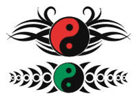 2 Tattoos temporaires (décalcomanies) yin yang (rouge et vert)