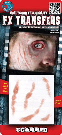 Balafré, les transferts d'effets spéciaux 3D cicatrices, les nouveaux déguisements révolutionnaires. Cette technologie a permis à Tinsley Transfers de remporter un Academy Award dans la catégorie Prouesse Technique. Facile à appliquer, mimétisme exceptionnel, ne nécessite pas de colles ou d'adhésifs salissants et d'un réalisme absolu.