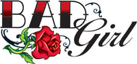 Rose rouge et le texte "Bad Girl" tattoo éphémère