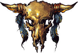 Beau tatouage temporaire d'un crâne de bison avec des plumes
