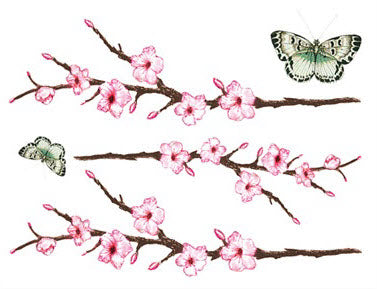 Floraison délicate de la beauté féminine. Une feuille contient 3 branches de fleurs de cerisier et 2 pappilons. Les petites branches de fleurs de cerisier peuvent être combiné avec les Skyn Demure Blossom Beauties plus large pour créer une fleur de cerisier grande.