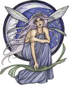 Elfe bleue superbe assis sur la lune tattoo temporaire décalcomanie