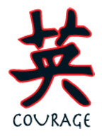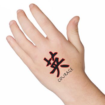 Caractères chinoises avec sous-titre anglais 'Courage', tattoo temporaire kanji noir-rouge