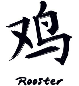 Zodiaque astrologie chinoise signe du Coq tatouage temporaire kanji.