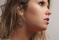 Skull (crâne) cool noir avec des yeux et nez en forme de coeur tattoo éphémère.