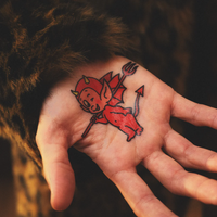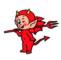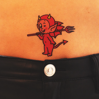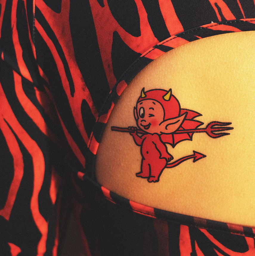 Vilain diable rouge avec trident et queue conçu par l'équipe de Tattoonie.