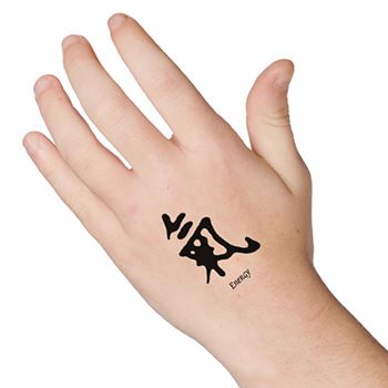 Caractères chinoises avec sous-titre anglais 'Energy' (energie) tattoo temporaire