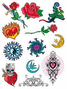 Catégories: Oiseaux, Fleurs, Cœurs, Lunes, Roses, Crânes et squelettes