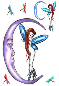 Belles grandes fées avec la lune et des libellules tattoos éphémères.