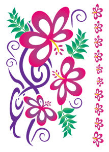 Fleurs affectueux roses et pourpres Flower Power tatouages éphémères avec un ensemble de tatouages à ongles.