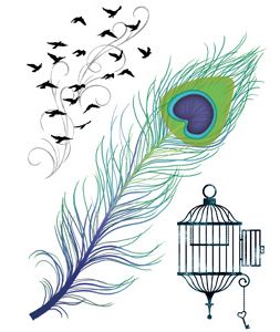 Liberté tattoo temporaire de mode avec plume, oiseaux et cage à oiseaux.