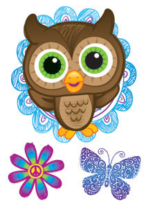 Fun hibou avec fleur et papillon tatouages éphémères.