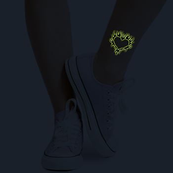Lueur avec cette coeur flambé tattoo temporaire qui brille dans le noir (glow in the dark tattoo, décalcomanie UV, tattoo lumière noire, tattoos lumineux)