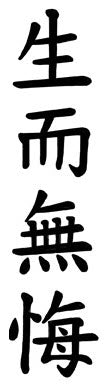 Tatouage temporaire avec Kanji mots chinois 'Vivez Avec Aucun Regret'