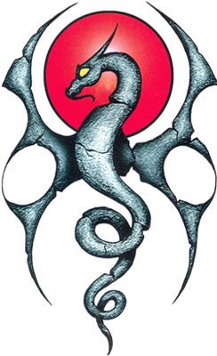 Tatouage éphémère grande avec la lune rouge et un dragon volant