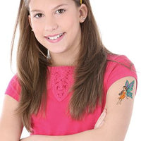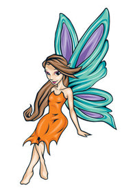 Fée orange aux cheveux bruns et les ailes bleues tattoo temporaire