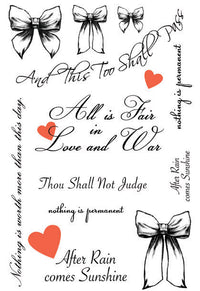Skyn Demure Quotes tattoos temporaires: "And this too shall pass", "All is fair in love and war", "After rain come sunshine", "Nothing is worth more than this day", "Nothing is permanent", "Thou shall not judge" et coeur.