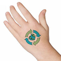 Symbole de recyclage avec le monde et coeur tattoo temporaire