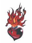 Coeur sacré rouge avec des flammes sacrées tatouage temporaire.
