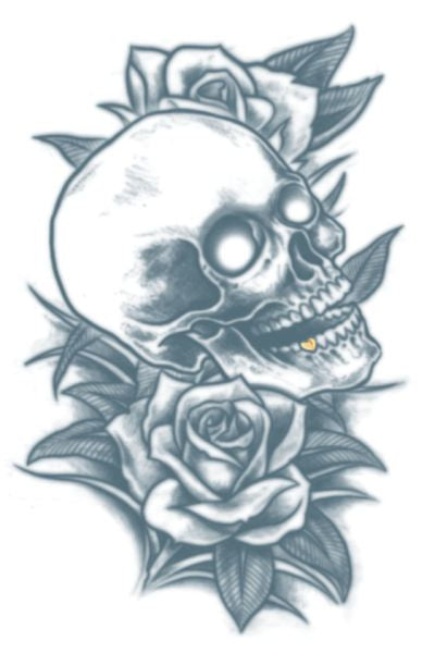 Tattoo temporaire Crâne et Roses de Tinsley Transfers