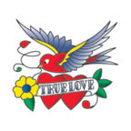 Oiseau avec fleurs, cœurs et le texte 'True Love', tattoo temporaire petit