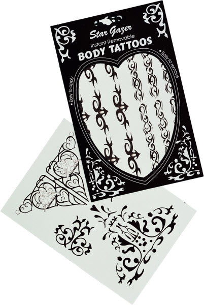 Stargazer henna noir body tattoos, 2 feuilles de tatouage de corps de henné