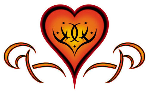 Tattoo temporarie de coeur belle avec des couleurs très chaudes, rouge et orange. Chaud au cœur!