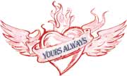Tattoo temporaire d'un coeur rose ailé avec les mots "Yours Always" (à vous pour toujours)