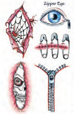 Fermeture à glissière, un oeil et des plaies Tatouages éphémères