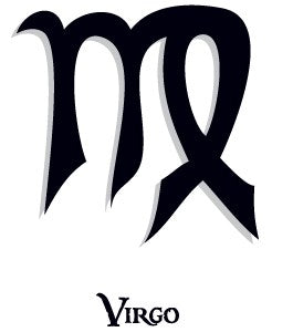 Zodiaque astrologie Vierge avec le texte "Virgo" tatouage éphémère.