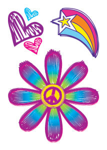 Vrede bloem, regenboog ster en harten tijdelijke tattoos