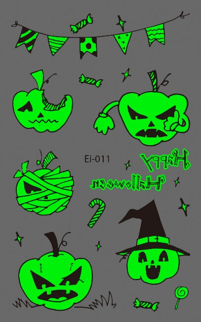 5 Pumpkins glow in the dark Halloween temporary tattoo