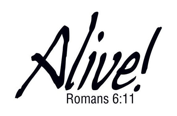 Temporary tattoo with text 'Alive! Romans 6:11'.