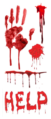 Bloodshalling Halloween tattoos with bloody handprint, blood-written word "HELP" and wounds ... Start shuddering!