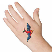 Temporary tattoo of a blue jay in red, green and blue