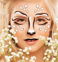 Become the sweet doe-eyed deer with this deer face temporary tattoo! Skip the hassle of putting on all that makeup, and go mess-free with this costume tattoo.